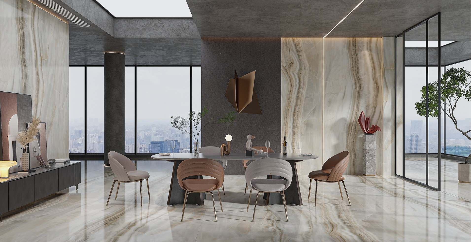 依諾瓷磚連紋大板產品及效果圖展示。連續拼接的超大畫面設計,拼出你想要的任意規格。
